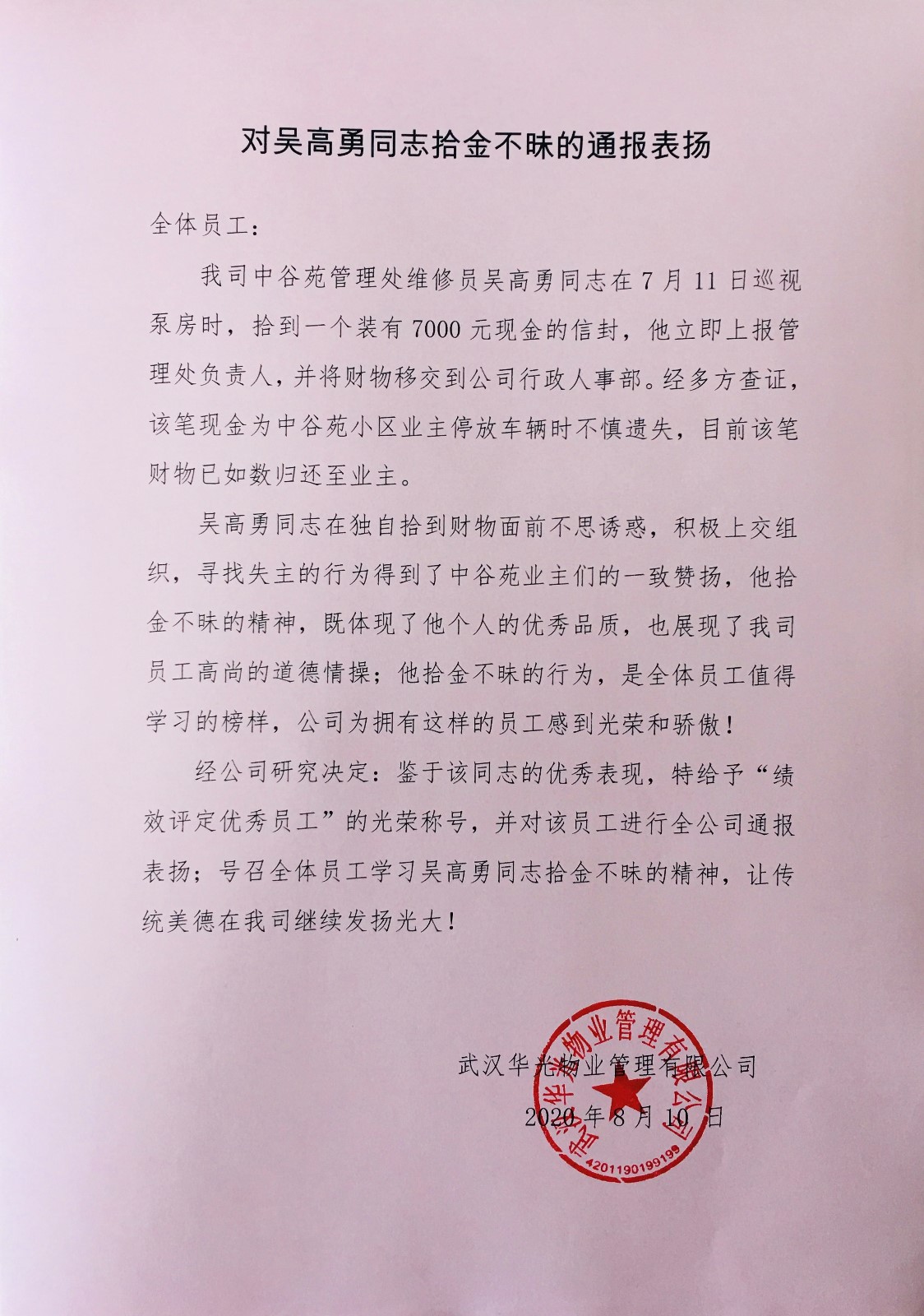 對吳高勇同志拾金不昧的通報表揚...[詳情]